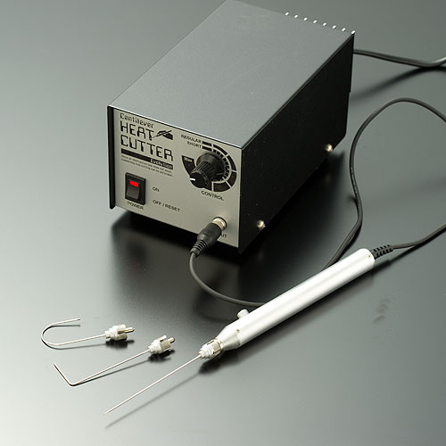 ヒイトカッターの最大の特長は、カンチレバー(一点支持)構造のカッター部にあります。「ヒイトニードル」と呼ばれるカッター部は細いステンレス製で、ホルダー部にあるスイッチを押すと約2秒で切断温度に達しますので、ペンで絵を描くように自然な作業ができます。
